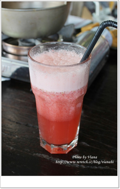 草梅火鍋一端上桌,超很吸引大家的注意!湯底呈現淡紅色的耶~還真的很"草莓"呢!