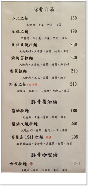每個拉麵也都列出有包含哪些食材,非常清楚唷![]()