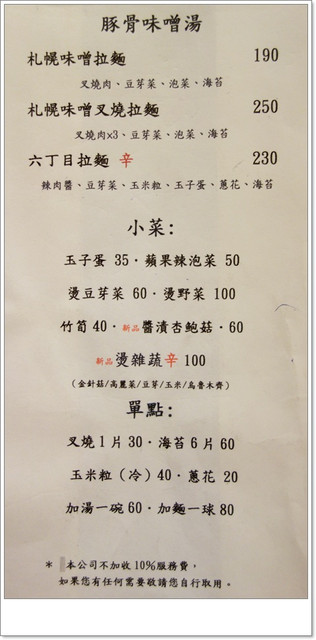 這次用餐我最喜歡的是六丁目拉麵,不過因為沒有包含叉燒肉,十分可惜,