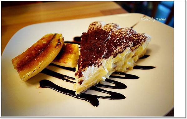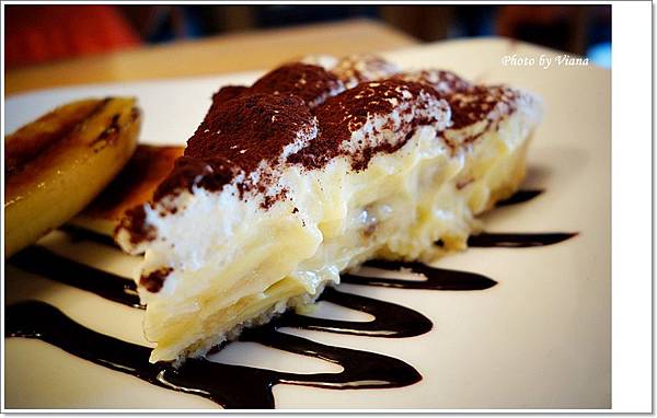 香蕉派的上層其實就是提拉米蘇的奶油和可可粉,