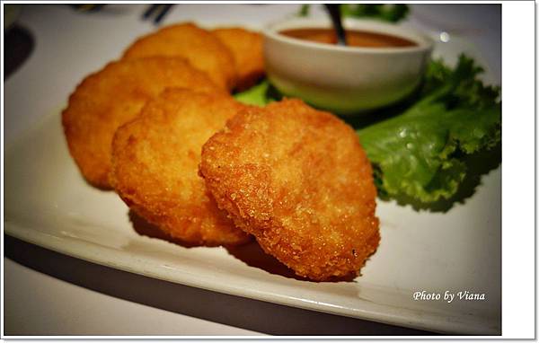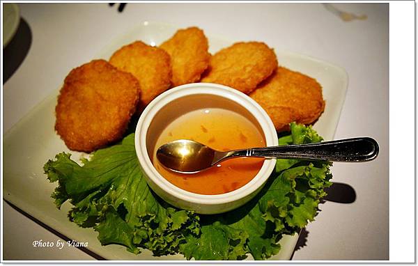 厚度大約一公分的金錢蝦餅,口感實在,有著酥炸的外表和彈牙的蝦餅餡料,好好吃唷~