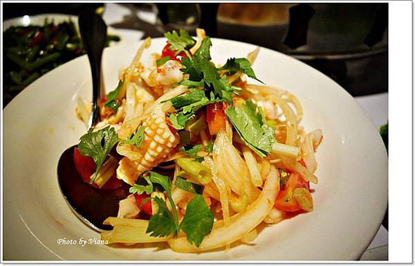 吃泰國菜前先來盤涼拌菜,這道涼拌花枝十分有辣度,