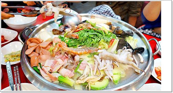 接著我們點的海鮮香腸火鍋 (韓幣 29000元)上桌了▼,