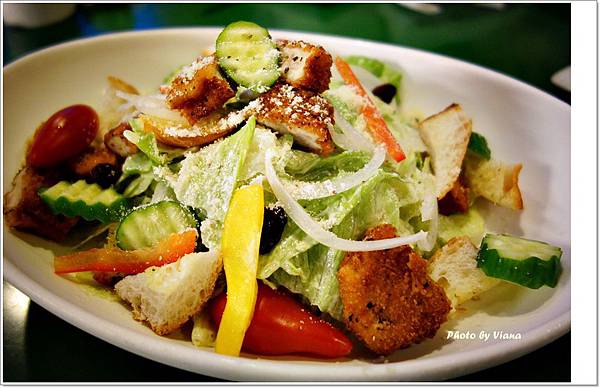 灑上起司粉及沾上凱薩醬,好吃清爽又開胃~