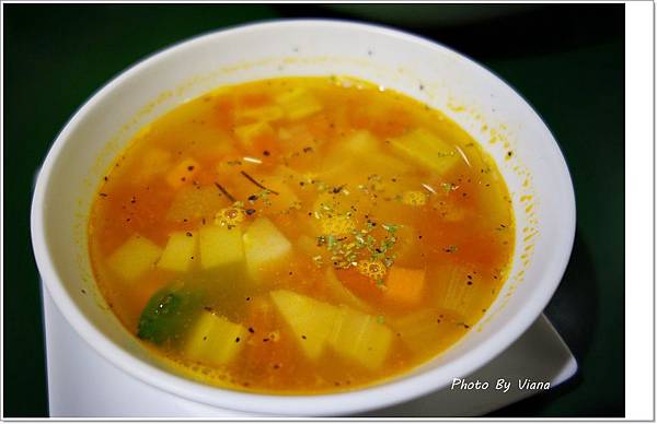 我蠻喜歡這裡的番茄蔬菜湯,味道酸鹹適中,喝起來不油膩很舒爽~