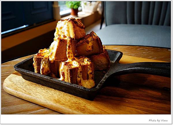 還蠻像是蜜糖土司的創意版,切成塊狀的吐司,口感酥酥脆脆,