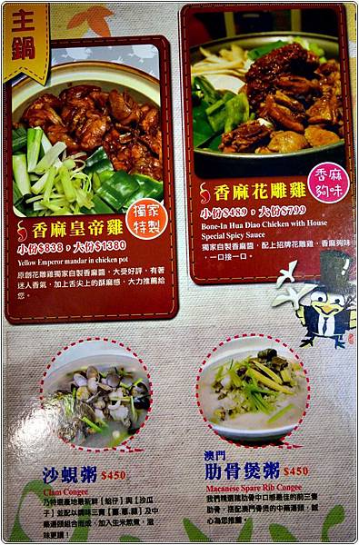 目前吃過的花雕雞、沙蜆鍋、澳門肋骨煲都美味滿分,