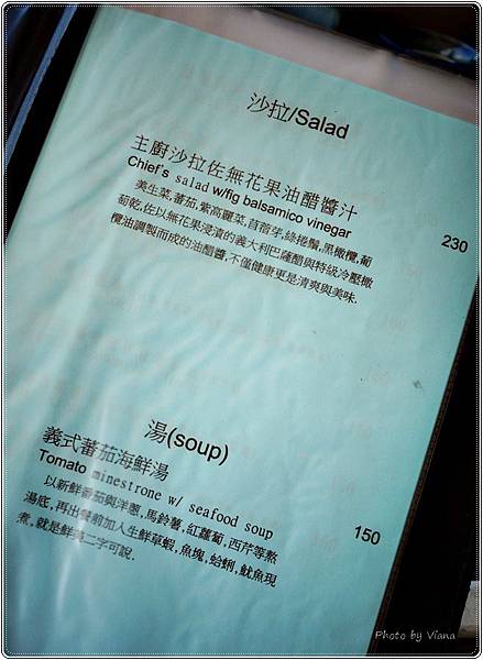 餐點供應有沙拉、湯、手工披薩、義大利麵、燉飯、魚雷堡、甜點/冰淇淋、